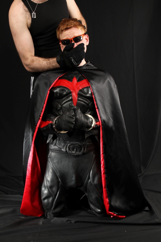 Okay, I know the Batman costume goes better with my other blog, but this is Tynan Fox here. I was fortunate enough to get a kind message from him, and he’s allowing me to share these pics with you all. Hot, eh? The bondage pics are here, and the costume pics are at Captured Heroes, in case you just want to enjoy the full attire. More to cum Saturday, hope you enjoy! I know I did…