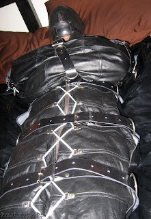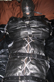 In the meantime, some pics of me wearing it. For the record, the hood and the gag are completely separate items. The gag is re-purposed from the Bishop Head Harness, and the hood is a neoprene hood with the mouth cut out.