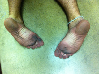 I have to admit, I’m not as much into dirty feet… but I do like guys who will degrade themselves. He had been walking around barefoot at work all day, and decided to enjoy himself. That takes some balls!