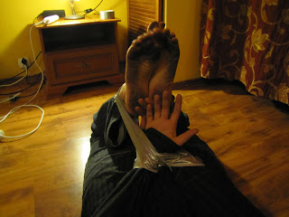 He’s back again!  Such hot feet, and hot bondage work, too.  Wish I could torment and taste those soles myself…