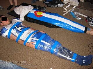 | The tape on the mummy is the state flag of Colorado, where he currently resides. |