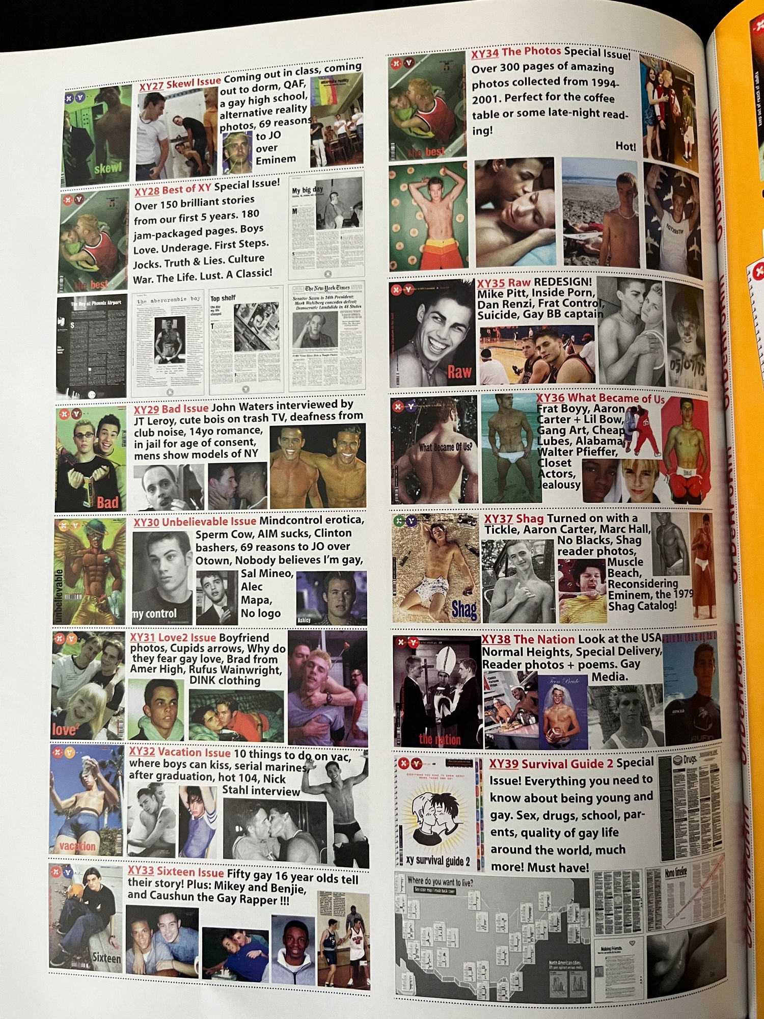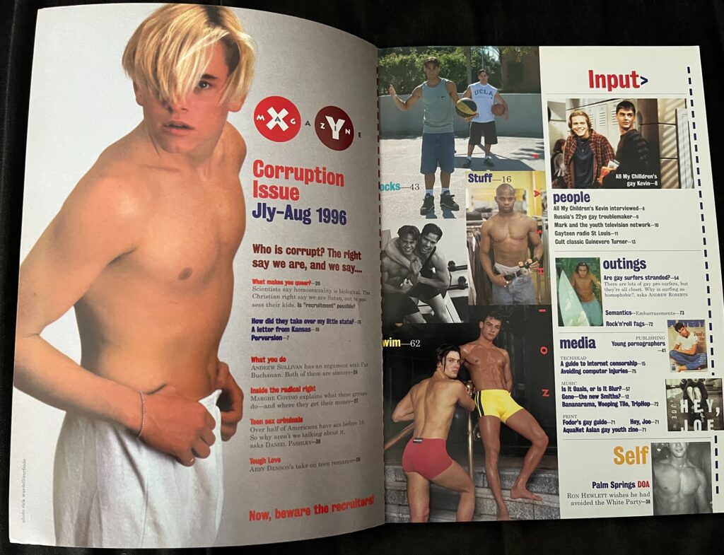 Only a couple of yeas after I started to realize I was gay (in my early 20s… I was a late bloomer, that may be another story one day), I somehow ran across the magazine XY. Obviously, the very hot guy on the cover caught my eye. I was starting to get tired flipping through my sister’s issues of Seventeen in an effort to find cute guys. Here was a very glossy, professional looking magazine that was chock full of hot, young guys. With lots of varied articles. To be honest, I probably didn’t read a lot of them, but I did appreciate they were there, and that they were trying to cover a lot of aspects about being a gay guy.