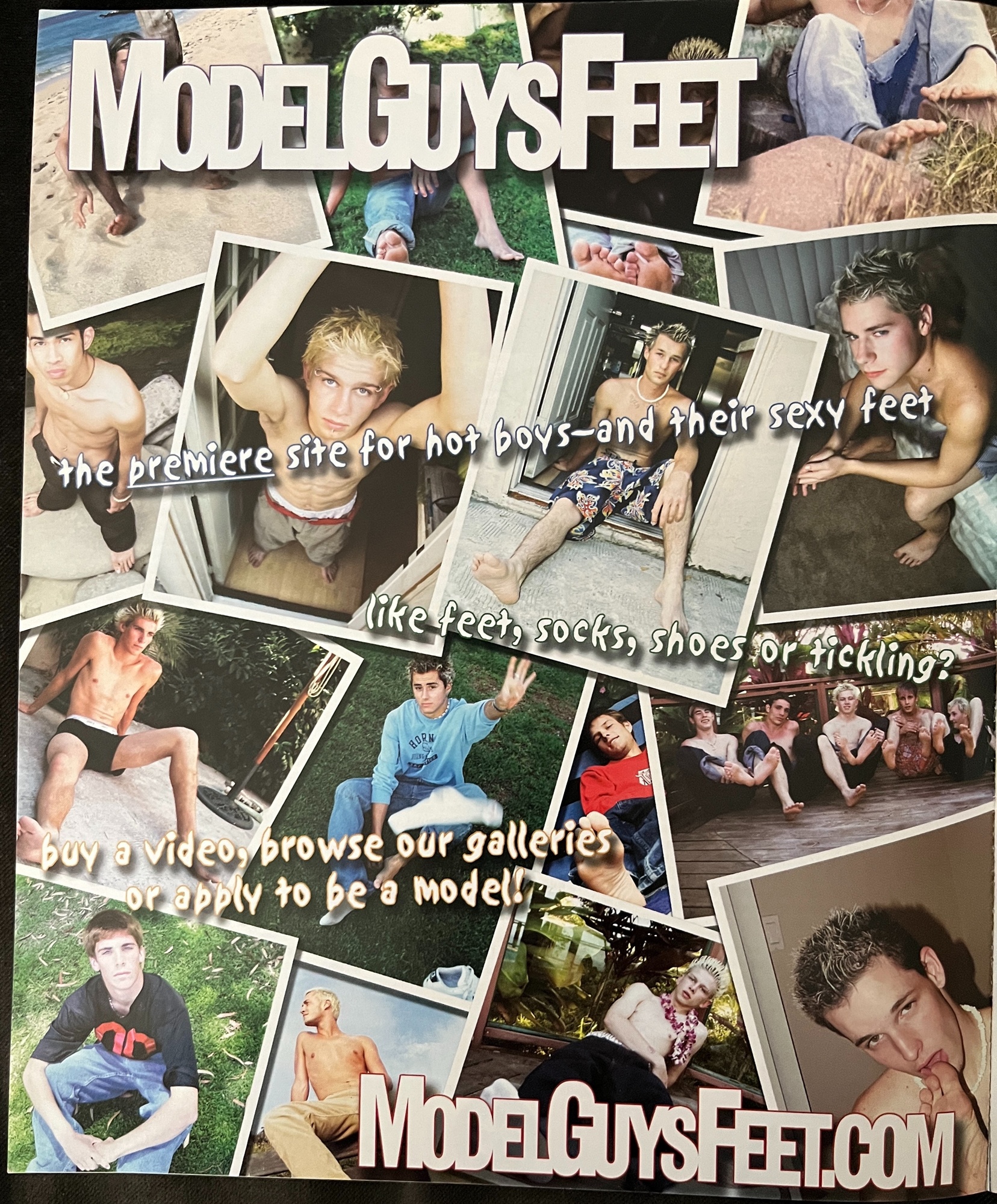 As I recall, I had already bought some kink porn, but I had yet to buy vanilla porn. This was the closest I came, and even this mag crossed over to kink territory often. One of their main advertisers was Model Guys Feet (the leading site for twink foot fetish at the time), and they certainly didn’t shy away from showing guy’s feet. Even Bound and Gagged didn’t show feet much, so this was my first time becoming aware of this as a separate fetish. And they even hinted at bondage here and there. So it really did have something for every budding gay male.