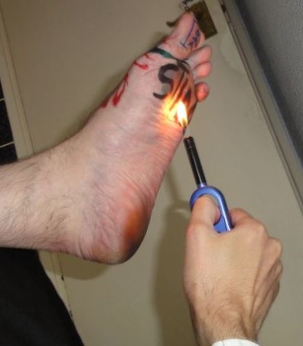 Hi, Love your blog. Not sure if you like these kinds of pictures, but here are some of a couple of dares I had to perform whilst playing truth or dare. The first involved a my foot and a fly zapper. For the second, we played hangman on my big toe – I lost so had to write on my foot and then hold a fire lighter to it. Happy for you to do whatever you want with the pics.