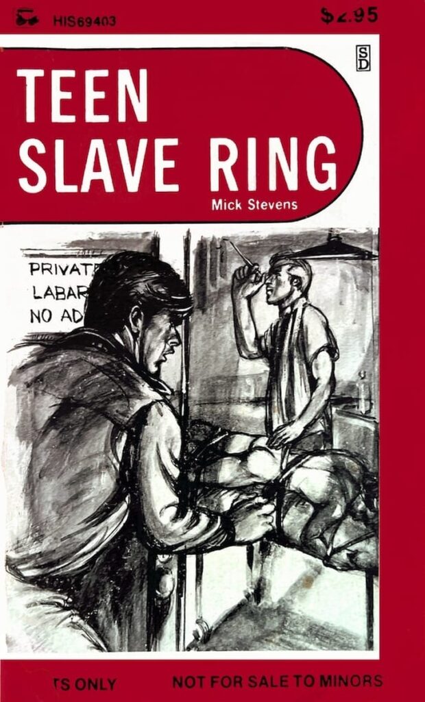 I enjoy collecting vintage gay pulp, usually for their very over the top covers and titles. So it was tough for me to resist “Teen Slave Ring” for it’s very campy name. But when I can, I try to read them. And in my experience, I’ve found these books are generally split into two categories: just lots of sex (like a straightforward porn movie), or ones that are more plot driven, and sex just happens.