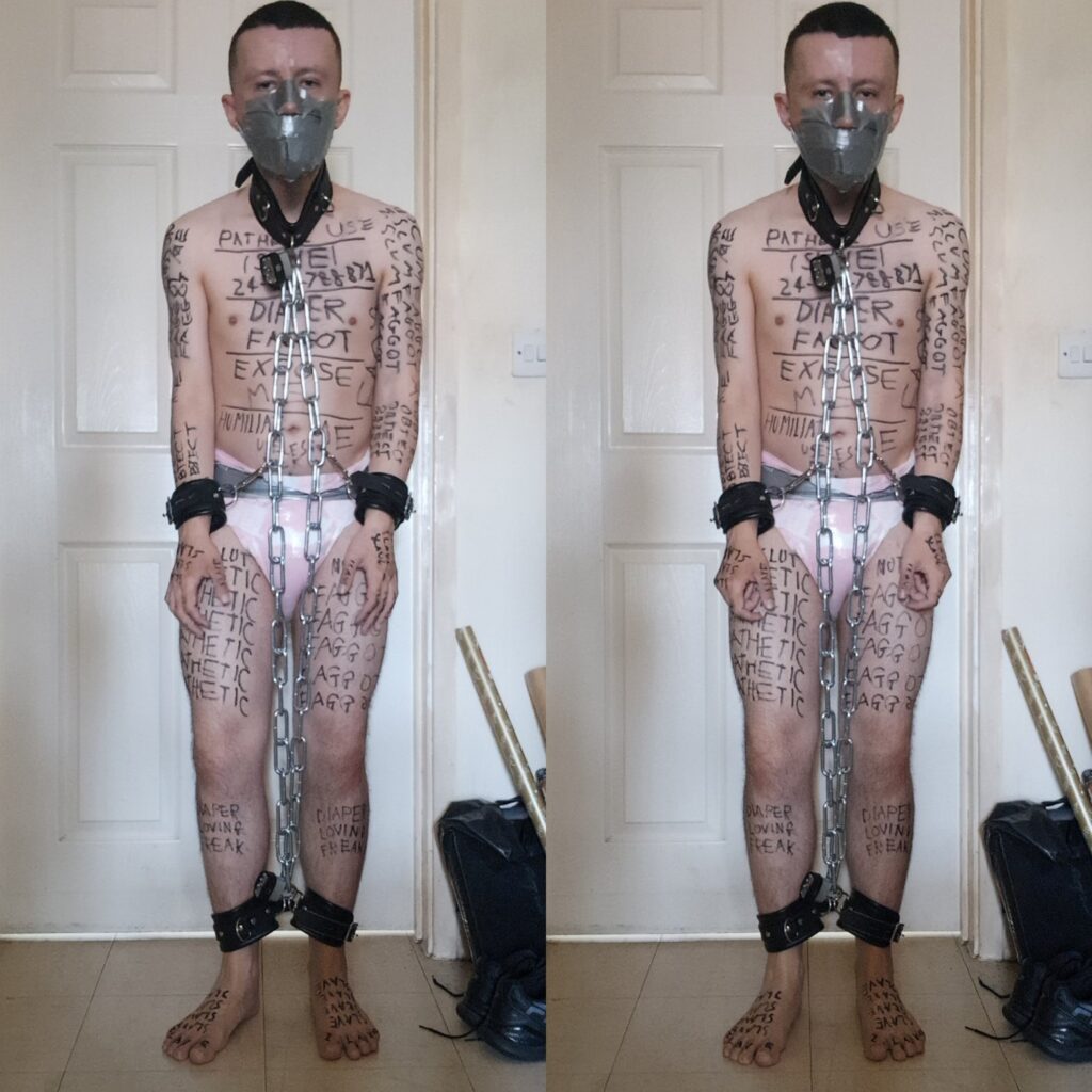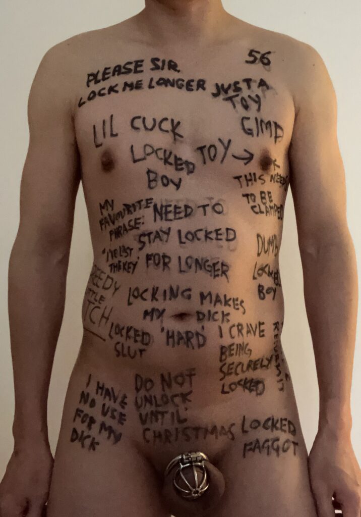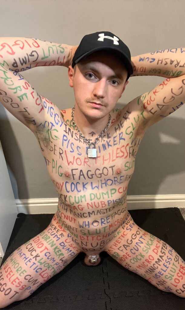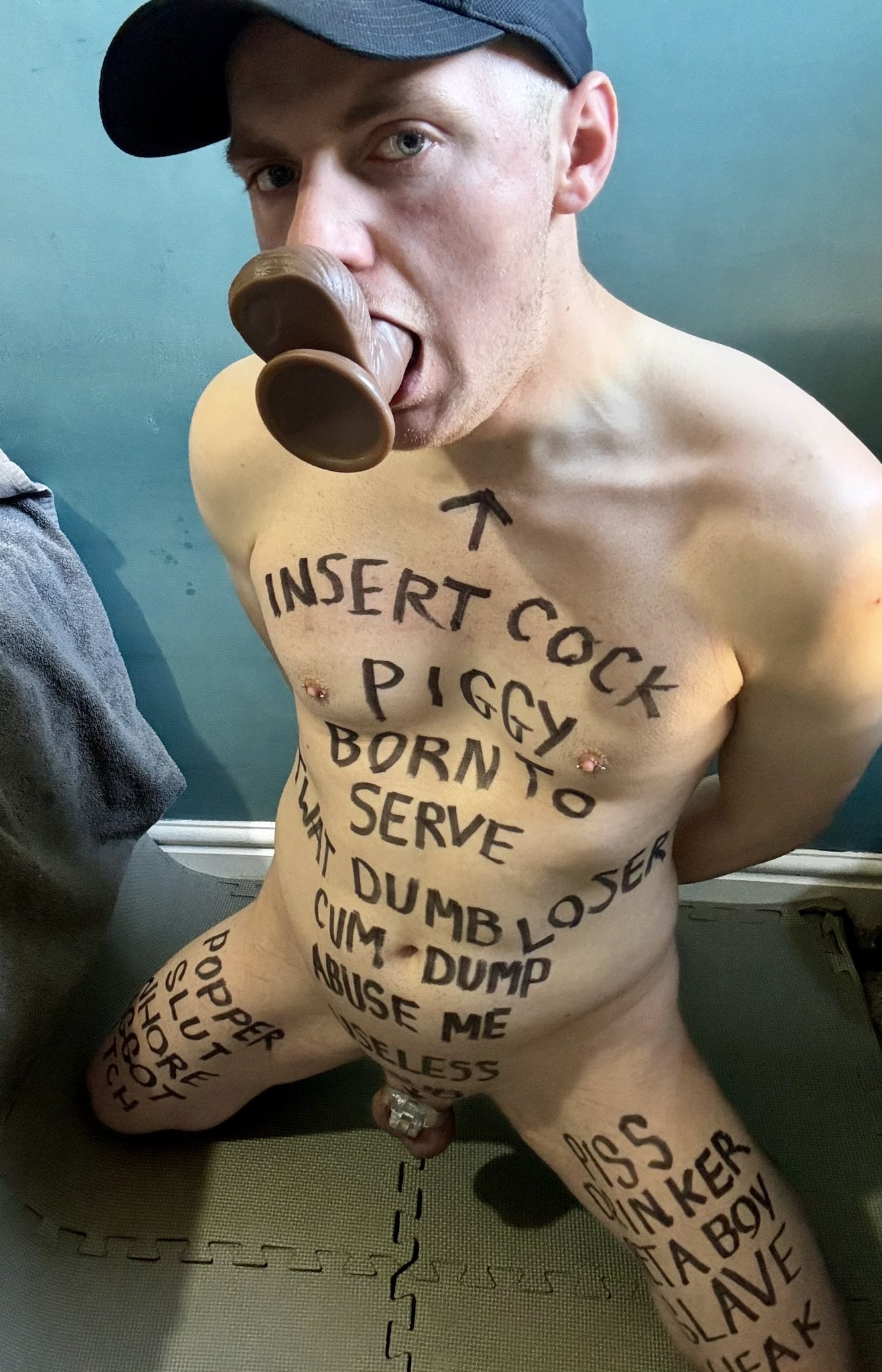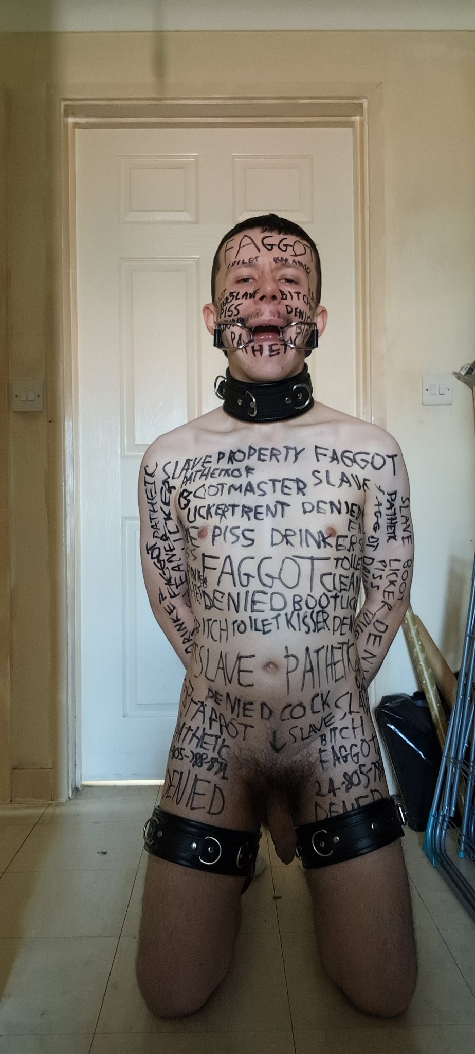 Just love it when a slave has reminders of who he is all over his body.