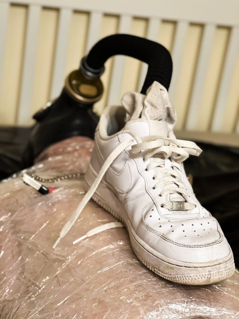 That hose ensures that you can’t escape all those noxious odors hiding way down deep in that rancid shoe… those stinky aromas are all you have to breathe in…