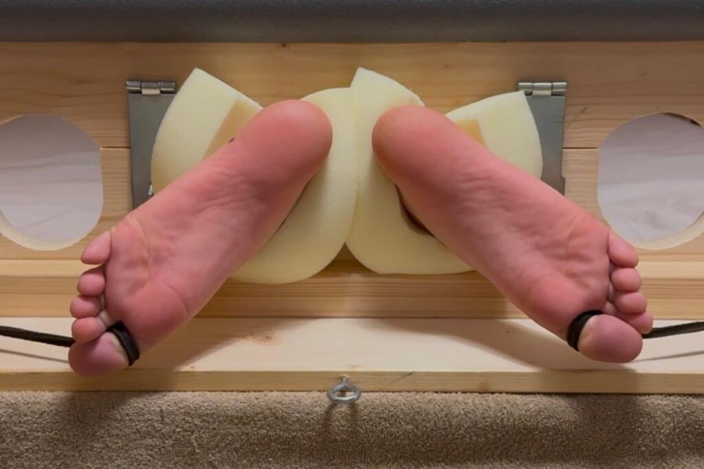 In the first pic, I really like the idea of combining toe/thumb cuffs with the stocks! And sometimes even I forget that they can be used either face up or face down.