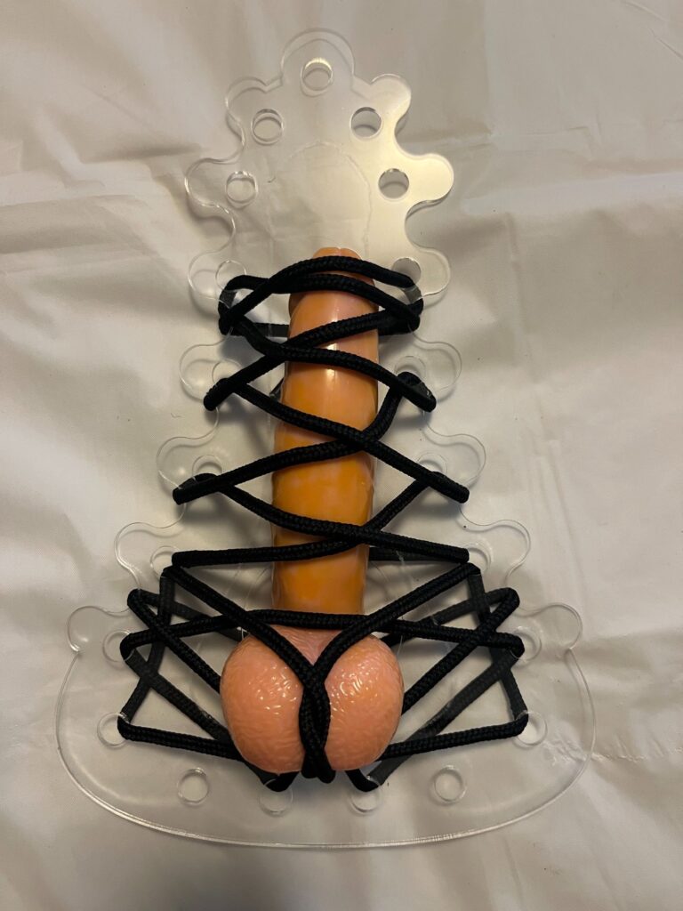 That said, I’m quite happy with it so far. It’s lightweight, easy to work with, and it will also be easy to clean (as opposed to many of the wooden ones I usually see). As you can see below, I’ve been practicing on a small dildo, but can’t wait to try it out on the real thing (and myself!)