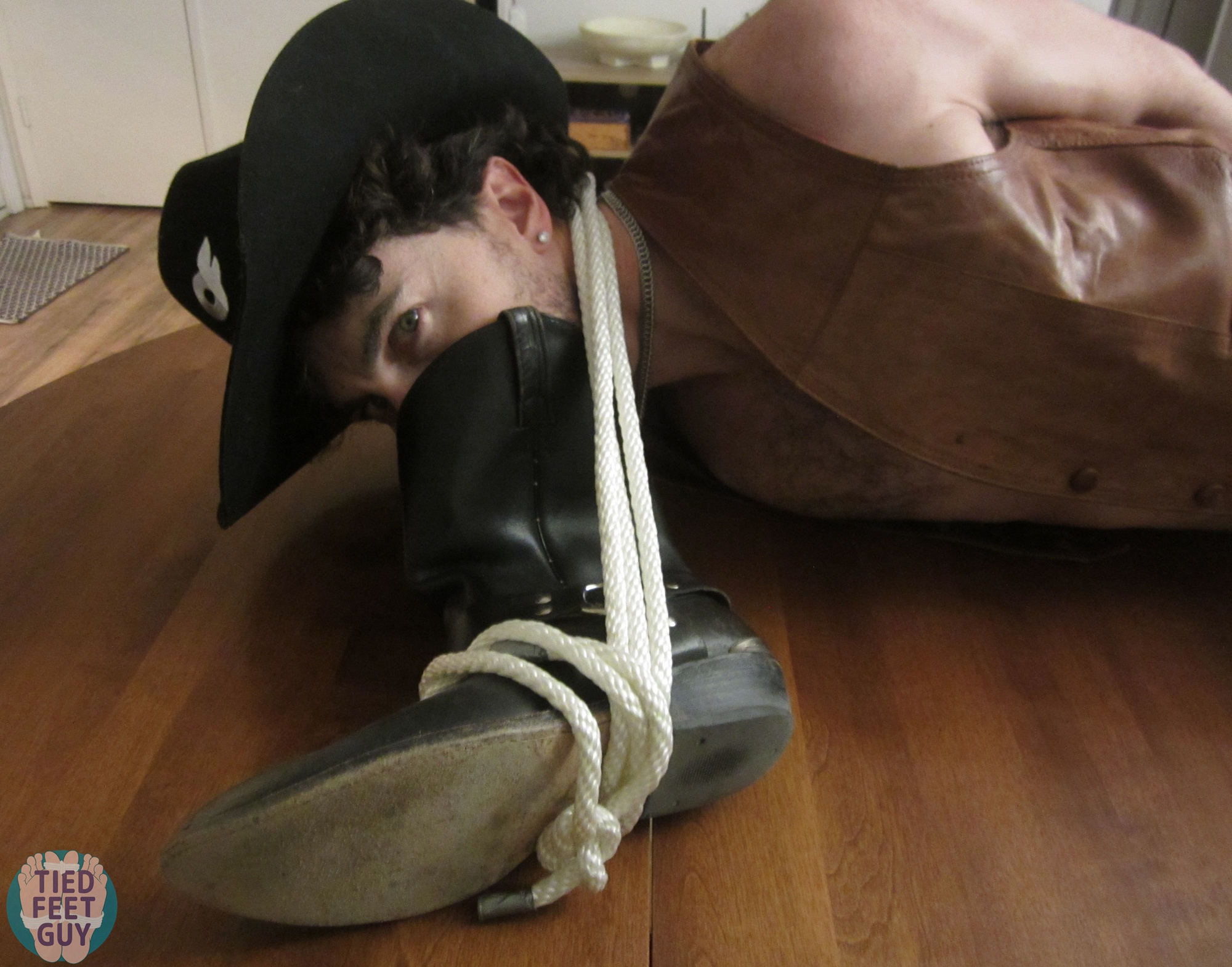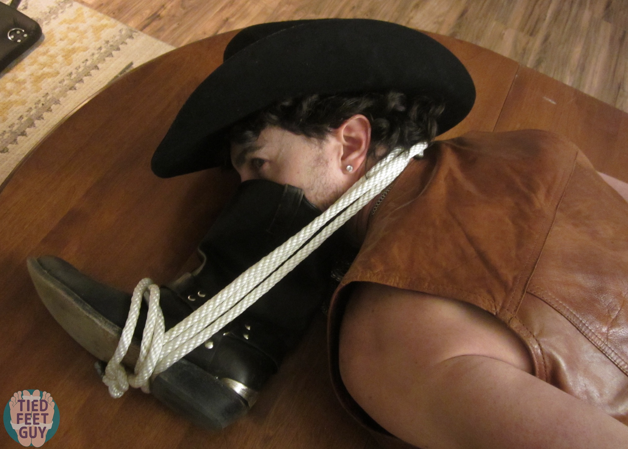 This set is just so damn sexy, isn’t it? Nothing like a hogtied, barefoot cowboy with his smelly boot tied to his face. And video at the end!