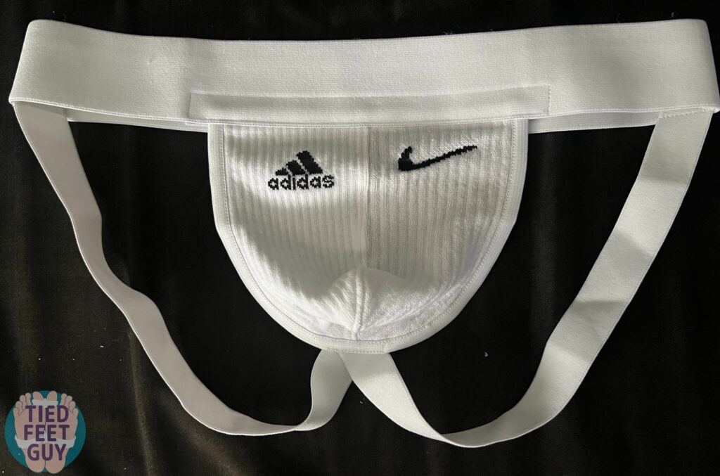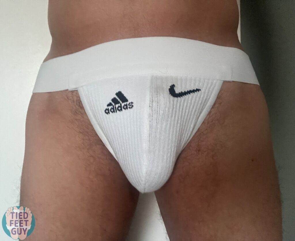 Saw this at the website Sneakermask, and couldn’t resist. You can get a jock made from either Nike socks, Adidas socks, or a mix of both (and they also offer Lacoste). I didn’t want to choose, so I opted for both.