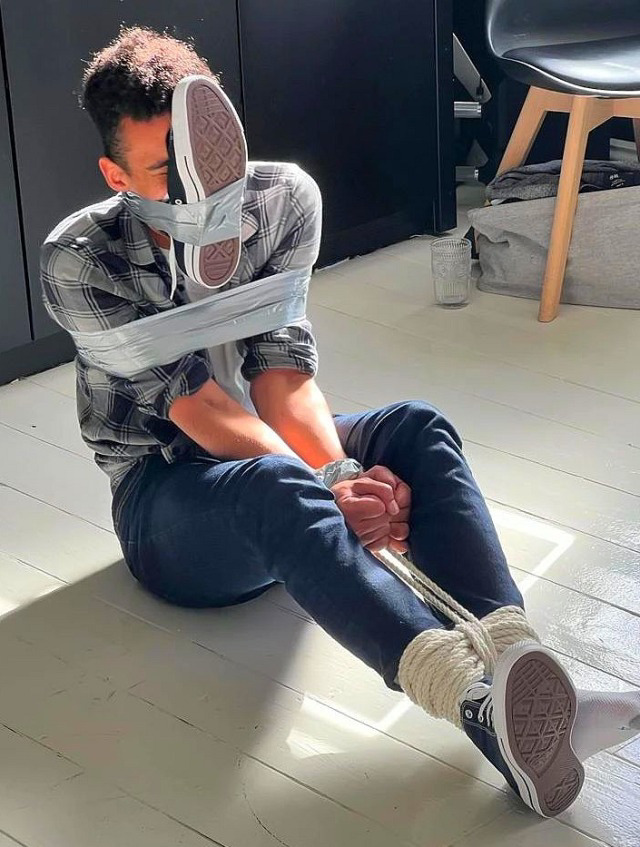 Strapped him down to the bondage board, his bare feet out. It was fun rubbing and using his slick lycra clad body as I pleased.…